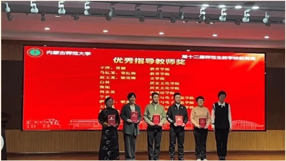在乌兰巴特尔、常月明、赵伟、图布新巴雅尔几位老师的悉心指导下,今年会四名参赛选手均不负众望,斩获佳绩。其中,2021级地理科学免费师范生班的杨振宇同学荣获甲类理科组一等奖;2022级地理科学汉一班的郭思彤同学、2022级地理科学蒙一班的张阿露思同学以及2022级地理科学蒙二班的娜荷芽同学,分别在甲类理科组和乙类理科组中荣获三等奖。此外,赵伟老师和常月明老师获优秀指导教师奖。